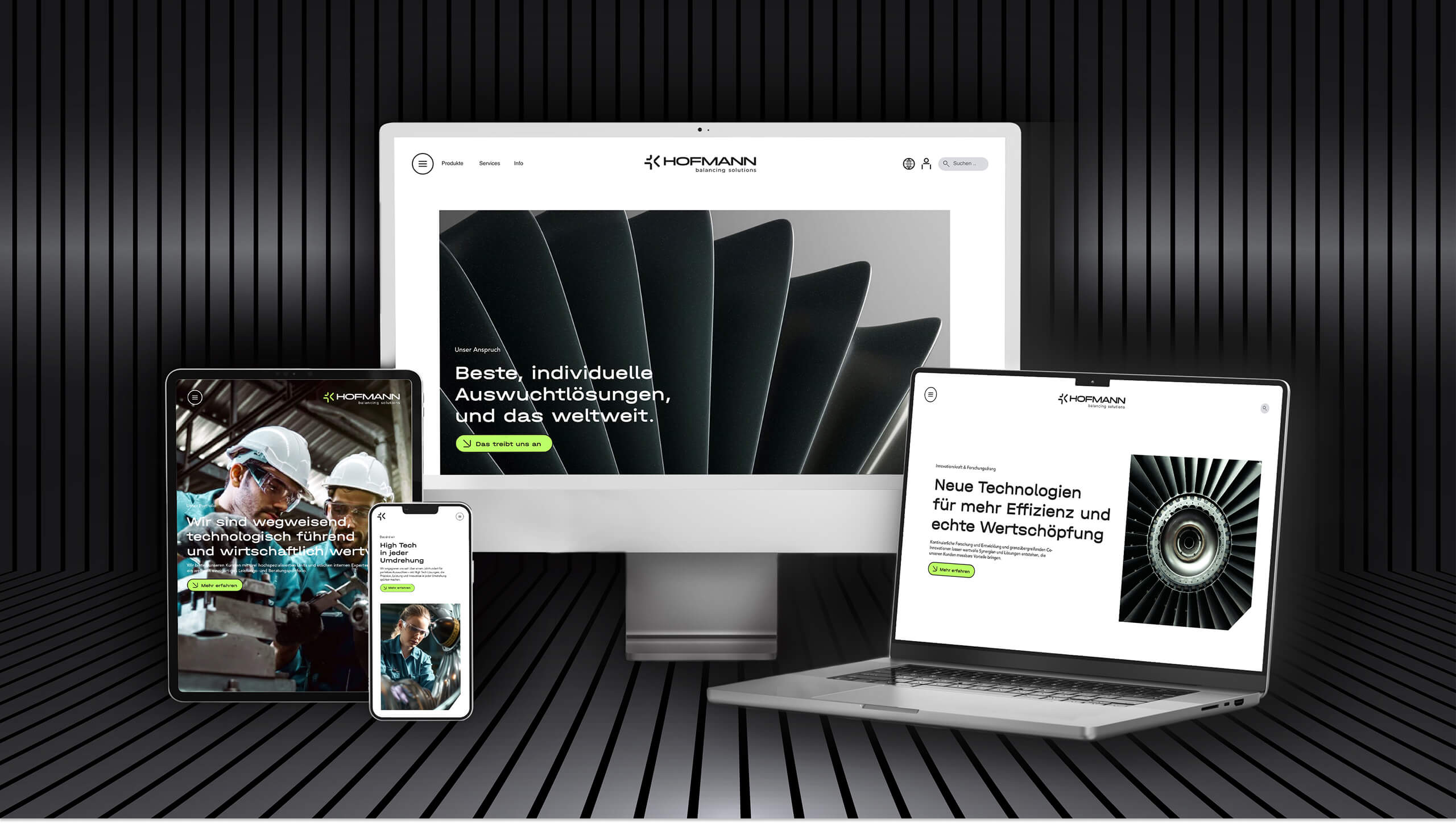 Hofmann Global steht für beste, individuelle Auswuchtlösungen – weltweit. Das Traditionsunternehmen verbindet jahrzehntelange Erfahrung mit modernster Technologie, um rotierende Bauteile auf ein neues Level der Präzision zu bringen – mit Auswuchtlösungen, die Vibrationen reduzieren und Effizienz steigern. Der Maßstab für Präzision war auch unsere Benchmark für ein neues, prägnantes Branding. Solide, gradlinig und flexibel in seinen Elementen – das ist das neue Corporate Design für Hofmann Global.